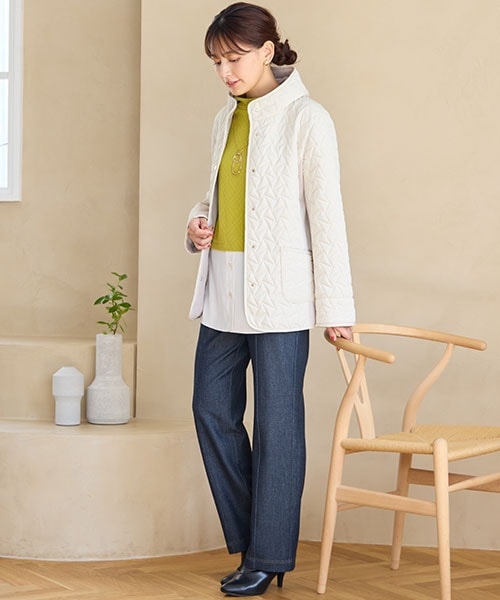 着心地にこだわったコートは大人のカジュアルコーデにピッタリの一枚。デニムパンツと相性抜群です。