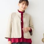 シルエットが可愛いアウターにカラーニットを合わせてパンツスタイルを華やかに演出。