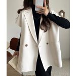 カジュアルとフォーマルを絶妙に融合させたダブルブレストのテーラードジレベスト。 オーバーサイズのシルエットがリラックス感を演出し、インナー次第で多彩なスタイルを楽しめます。