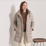 ニットセットアップに、昨年大人気だった中綿アウターの新色「モカブラウン」を合わせました。上品な光沢感があり、プリンセスラインのすっきりシルエットなのできれいめコーデにぴったり。襟の内側がフェイクファーで首元までしっかりあたたかです。撥水加工で急な雨や雪にも安心です。
