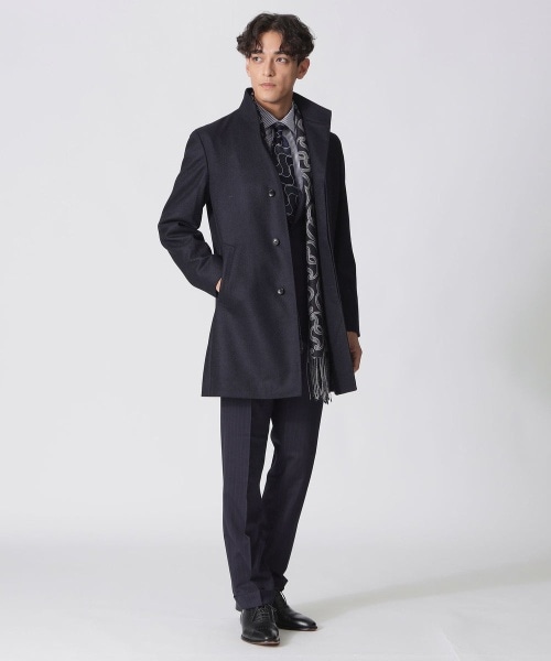 細身のIラインシルエットが特徴的な「HOUSTON(ハウストン)」モデルのミディアム丈デザイン。衿立ちが良くなるよう設計されたスタンドカラーがスマートな印象を与えます。スーツ・セットアップに合わせていただきやすく、Vゾーンがエレガントに見える設計です。