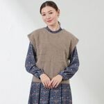 さっと羽織れるキルティングコートは1枚あるととても便利です!フードは取り外し可能で、ウエスト内側のコードでシルエットチェンジも叶います。フォックスにウールとカシミヤを混紡したヘアリーなニットベストと、シルエットが美しい程よいツヤ感のあるフレアスカートと合わせました。