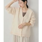 【着用サイズ いずれも:M】ライトアウターとしてもご使用いただけるニットカーディガン。発色の良いグリーンにブラックデニムを合わせてカジュアルに。