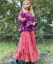花柄のティアードスカートを合わせてレトロな印象に◎