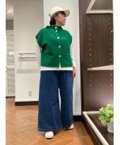 ユーカリ柄のオリジナル生地キュロットに、スウェット風ロゴニットを合わせた秋冬コーデ。軽く暖かいウールコートはモチモチの肌触りで上品に。広がらないシルエットで動きやすく、毛玉になりにくいニットと相性抜群。大人カジュアルにぴったりのコーディネートとなります。