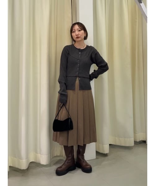 ニットは着回し抜群のセットアイテム。 ビスチェとカーディガンそれぞれで使えます! トレンド感あるミディ丈のスカートに 合わせて大人っぽく◎ ロングブーツ合わせがお気に入りです。