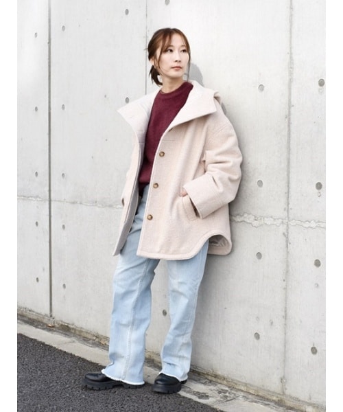 quaranciel: スタンドカラー フーデット ミディ コート