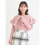 大きめケープが可愛いニットプルオーバーが登場しました♪昨年から大人気のアイテム! オフショル風デザインで上半身を華奢見えさせてくれるだけでなく、胸囲のボリューム感も隠してくれるのが嬉しいポイント◎ スカートは裾フリルデザインが特徴のミニ丈ニットスカートを合わせました♪