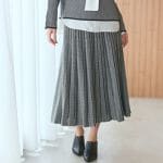 オーバーすぎず程よいゆとりのあるサイズ感のニット。着丈も腰骨が隠れる程なので、スカート合わせでもインせずバランスよくお召しいただけます!ニット素材のスカートは伸縮性があり、とっても楽ちん?プリーツデザインですが、ニットの重みがあることで広がりすぎないシルエットです!