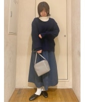 軽やかなギンガムシャツを主役に、きれい目なスタイリングに合わせました。インナーのバイカラーハイネックは肌に優しく寒い季節も快適に過ごせます。きれいめ素材のスカラップパンツはウエスト調整可能で小柄さんにも◎ロングシーズン活躍する万能アイテム。着回し力抜群でデイリーにもおすすめです。