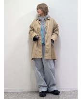お袖と衿のコーデュロイ切替が可愛い軽量キルティングコートはオーバーサイズでヒップラインも隠れ、防寒性も◎ JOiEロゴのもちもちニットとセミフレアデニムスカートを合わせ、キャップの遊び心ある刺繍でカジュアルに仕上げた冬の大人可愛いスタイルです。