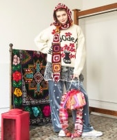 刺繍があしらわれたコーデュロイパンツと合わせた、冬のフォークロアスタイル。