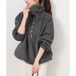◆ ふんわり軽くてあたたかい、フリースプルオーバー トレンド感あるデザインが魅力のプルオーバー。 スタンドネックはスナップボタンで調整でき、 寒い日はしっかり閉めて ゆるく開ければ抜け感のあるスタイルに。