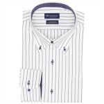 秋冬のスーツスタイルをテーマにコーディネートしました☆ カジュアル感を出しすぎないようにブラウンと相性が良いネイビータイやネイビーのストライプシャツと組み合わせて、誠実さや真面目な雰囲気を演出しました◎。
