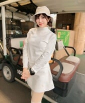 グリーンにも映えるWinter Whiteのニットセットアップ