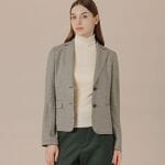ハウンドトゥース柄のショート丈のジャケットです。スカートやワイドパンツとの相性が良くワンピースの羽織としても活躍します。背抜き仕様なのでインナーにタートルネックなどを使うや着てももたつきません。モスグリーンのパンツは秋冬のアクセントアイテムとして活躍してくれます。