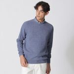 ケーブルニットセーターのご紹介です。 同系色のスポーツシャツと組み合わせたおすすめのコーディネートです。