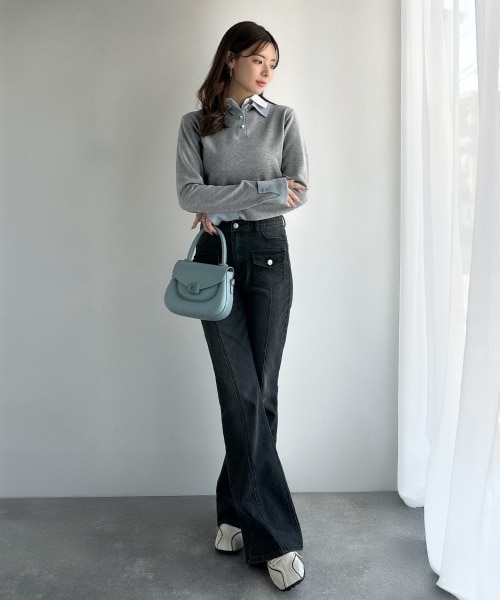 2025AW新作【mily bilet】脚、盛れすぎ注意!ポケットデザインストレッチフレアデニム