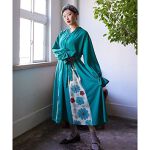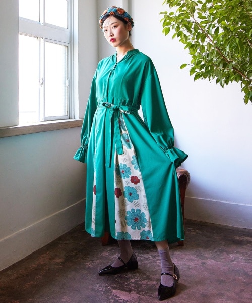 無地と花柄をレイヤード風に組み合わせたワンピース。