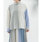 トップスに使用している丸衿シャツは綿100%ですが、暖かみのある生地で秋冬にぴったりの一枚です。 ボトムはリネンビエラを使用しており起毛生地なので暖かみがあります。高身長さんにもオススメの丈、ボリューム感です。