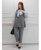 トップスは、ラメ入りのラインデザインが特徴のニットプルオーバー! 1枚で着映えするアイテムなので、シンプルなボトムスとの相性がとても良いです◎ ワイドパンツは、楽ちんな着心地と細見えが両立された嬉しいアイテム!トップスインして着るのも出して着るのもどちらもおすすめ♪