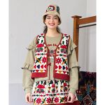 西インド・グジャラート州の遊牧民、カッチ族の伝統刺繍モチーフを現代風にアレンジしたベスト。 カラフルな刺繍をほどこしたパンツとのコーディネート。 個性豊かなフォークロアスタイル◇◆