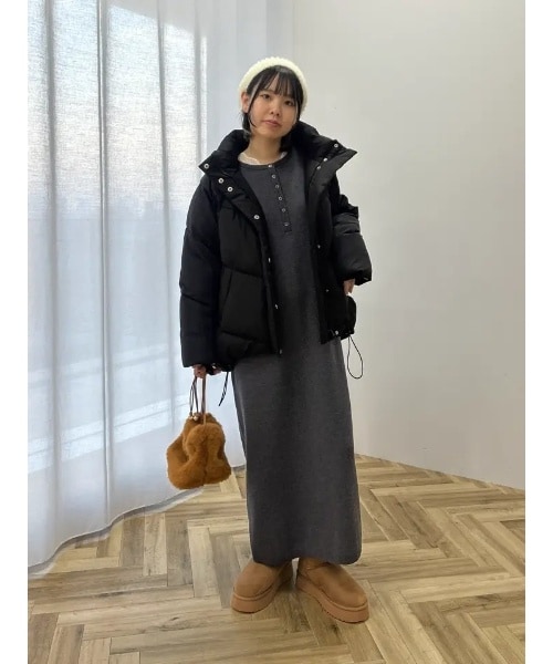 【着用サイズ インナー:S ワンピース:F ブルゾン:M】ワンピースは158cmでムートンブーツを履いてちょうどいい裾の長さです。