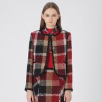 【10th ANNIVERSARY】クレストブリッジチェックツィード素材のノーカラージャケットです。コンパクトなシルエットは、どんなボトムともバランス良く着用いただけます。襟周り、袖口、裾のトリミングブレードとフロントボタンが華やかなアクセントです。