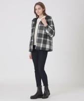 【10th ANNIVERSARY】クレストブリッジチェックツィード素材のノーカラージャケットです。コンパクトなシルエットは、どんなボトムともバランス良く着用いただけます。襟周り、袖口、裾のトリミングブレードとフロントボタンが華やかなアクセントです。