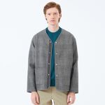 落ち着いたトーンでまとめシンプルながらも上品さを出したカジュアルコーデです。ノーカラージャケットはリバーシブル仕様です。カーディガン感覚で使えるため、ゆるすぎないシルエット、きれいめにもカジュアルにも馴染む万能アイテムです。
