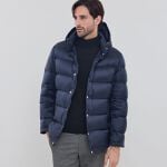 リサイクル原料を使用した高密度のナイロンタフタ素材。2層仕様で仕立てているので軽量感が特徴です。フードは着脱が可能な仕様のデザインで、フードを外すとすっきりとしたスタンドカラーとして着用できます。
