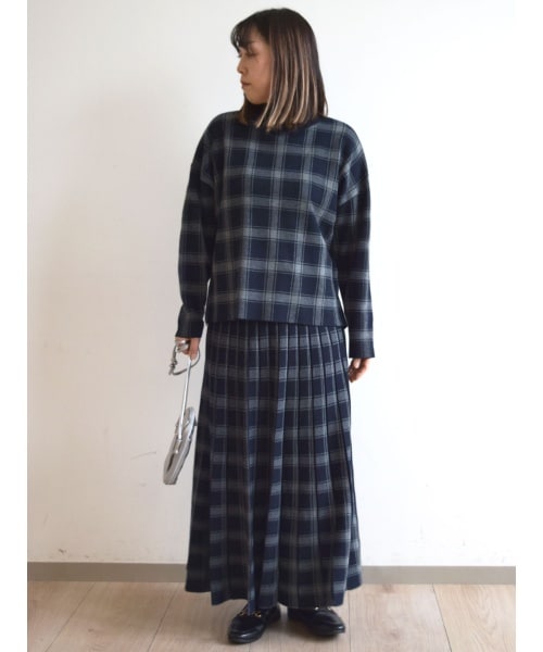 【HOLIDAY/こなれSETUP/洗える】チェック柄プリーツニットスカート