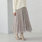 \冬を軽くする、やさしい色合わせ/ ブラックレースの揺れ感に、 まろやかな“モカブラウン”のダウンとレモンイエローを差した柔らかい冬コーデ。 真っ黒で締めるより、あいまいトーンが 女性らしさと抜け感を自然につくってくれます。