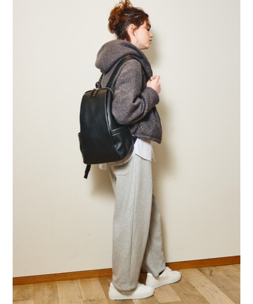カラ―:ブラック スウェットコーデのカジュアルスタイル。ブラックのリュックを合わせ、シンプルで落ち着いた印象に。機能性抜群の10個のポケットを備え、日常の様々なシーン(オフィスBAG、ママBAG等)で活躍します。