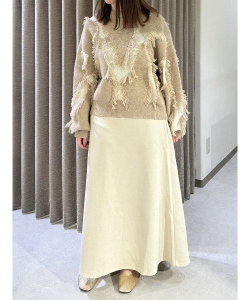 シャギー×ジャガードで立体感のあるニット 厚みがありすぎず柔らかい生地感で、ゆったりしたシルエットが可愛いです フレアスカートを合わせてフェミニンな着こなしに。 スカートIVORY-A着用