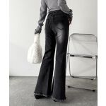 編み上げ仕様のバックリボンを背面に施したガーリーなデニム♪ フレアラインと程よいフィット感が足を細く美しく魅せ ハイウエストで脚長&スタイルアップ効果も◎