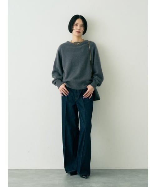 ふんわり暖かく上品なゆるシルエットニット。 シンプルながらも素材の風合いが引き立ち、女性らしい柔らかな雰囲気を演出。