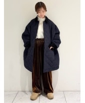 フード付きでパーカーのように羽織るだけで様になるファーブルゾンに幅広の裾ロールアップが印象的なワイドデニムで合わせました。インナーにボーダーのカットソーを合わせることで抜け感を演出。