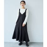 Vネックの抜け感と、裾に向かって緩やかに広がるマーメイドシルエットが魅力のジャンスカワンピース。 深めのVラインは小顔見えを叶えながら、縦長ラインを美しく引き立てます。