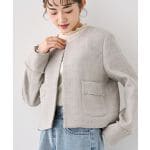 大切なハレの日を彩る、上品な華やかさを醸すミックスツイードノーカラージャケット。 小柄さんにぴったりのショート丈デザインは、 ワンピースはもちろん、スカートにもパンツにも合わせやすく、スタイルアップ効果も抜群です。