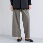 ニットはふっくらとしたブークレ素材。手洗い可です。タック入りワイドパンツはソフトな風合い。マシンウォッシャブルです。Iラインシルエットのアウターは上質なウール100%。ソフトな毛質で高級感があります。