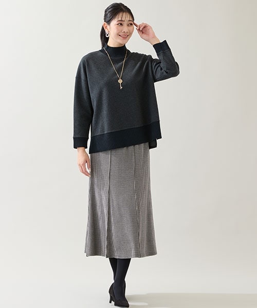 【大きいサイズ】毎年人気のプルオーバーはパンツだけでなくスカートとも相性抜群!モノトーンでまとめれば上品見えが叶います。
