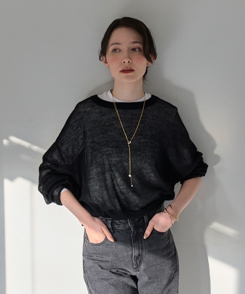クールカジュアルなブラックコーデに、ゴールドのラインを印象的にまとって、女性らしいアクセントを。クルーネックにも相性が良いロングYラインネックレス。無地のトップスをクラスアップさせる優秀アイテムです。