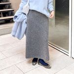 暖かく履けるニットスカートは長さがちょうど良くて足元も選ばずに嬉しい。