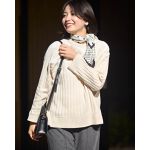 ケーブル編みニットにきれいめパンツを合わせた、上品カジュアルスタイル。首元のスカーフがさりげないアクセントに。オンオフ問わず活躍する、大人の余裕を感じるコーデ。