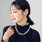 ジャケットを脱ぐと、ブラウスは袖口のパールがアクセントに。