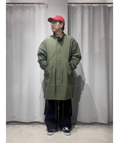 【着用サイズ ニット:XL コート:LL パンツ:L】3WAY構造で使い方を選べるフィッシュテールコートは、季節の変わり目から真冬まで頼れる一着です。取り外せるキルティングインナーは単独でブルゾン感覚に使え、合体すれば高い保温性を発揮します。
