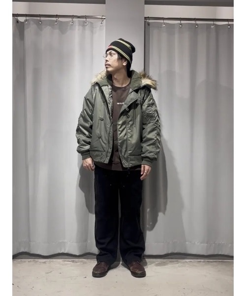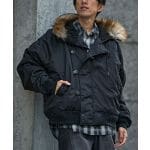 【着用サイズ スウェット:XL ジャケット:L パンツ:L】ポリエステルツイルのしっかりとした表情がミリタリーテイストに上品さをプラスするジャケット。袖口のリブは程よい伸縮性があり、冷気を遮断してくれます。
