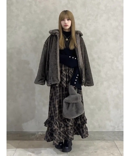 グレーのファーの色味がかわいいブルゾン。厚手のニットやスウェットを着ても余裕なくらいのサイズ感です!