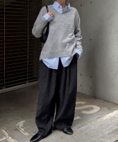 深すぎないVネックなのでシャツやTシャツとのレイヤードはもちろん、1枚で着てもいやらしさ無く程良い抜け感で着こなせる、万能な一着です。